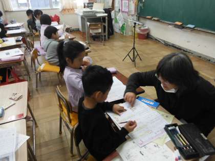 テスト直しをしています。先生の説明で聞き逃してしまったところは、友だちも教えてくれます。