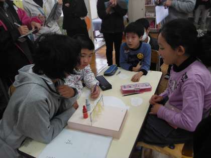 その様子を、全教員で参観し、こまやかな支援の手立てや教具の工夫を学ばせてもらいました。