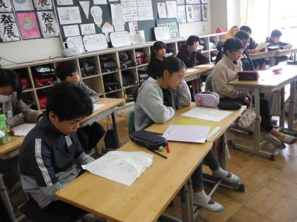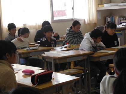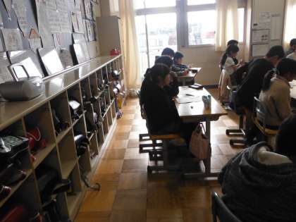 卒業式に歌う曲を決めます。3曲までしぼりこみ、今日はいよいよクラスの総意として1曲を決めます。CDプレーヤーから流れる調べに、全員の意識が集中しています。