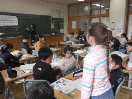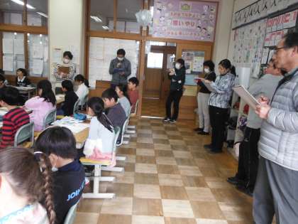 授業をやりくりした先輩教員も多数駆けつけ、初任者の授業を見守ります。きっと、放課後には、先輩教員から初任者に多くの助言が与えられることでしょう。