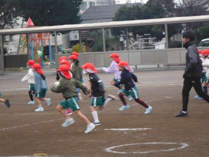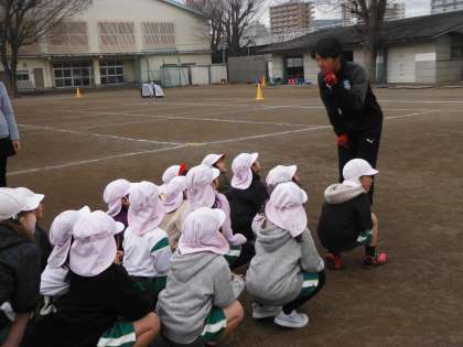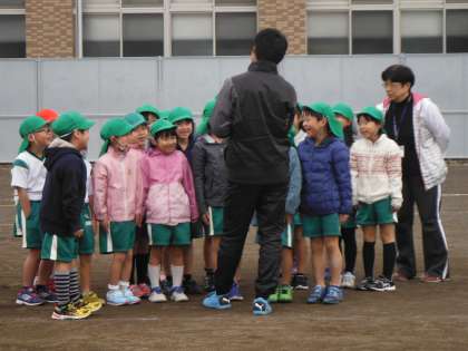 1学級に1人ずつコーチがついてくださり、体を温める運動が始まりました。