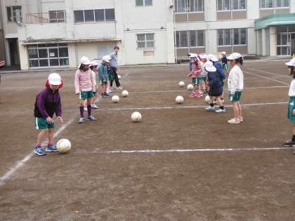ボールの蹴り方や止め方も、丁寧に教えていただきました。