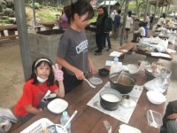 となりの図工室では、電動糸のこぎりで切った板に丁寧に色を塗っています。