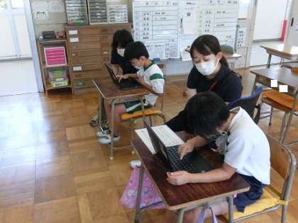 ローマ字入力やひらがな入力で子供たちは、タイピングの練習をしています。