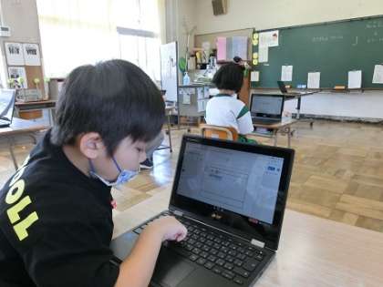 7−1組の子たちは、すきまちゃんのアルバム集をつくりながら、ひらがなを入力する学習をしています。