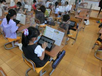 3年1組の子たちは、ゆかいな木琴をChromebookのバーチャルピアノを使って演奏しています。「ミミレレミミレ〜」や「レミファレミファソ〜」など、指を上手に動かしながら音を奏でています。
