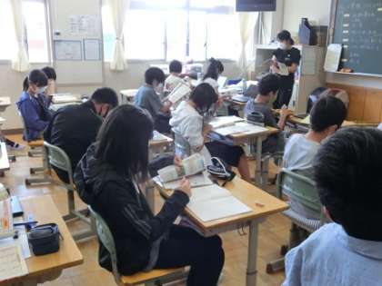 3組は、家庭科の授業でした。持続可能な開発目標、SDGsについての学習です。食生活、消費生活、住生活、衣生活など、自分たちの生活をSDGsの視点から見つめます。