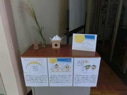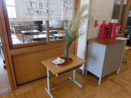 学校でも、給食室の前や3年生の廊下にお団子やすすきなどが飾られました。