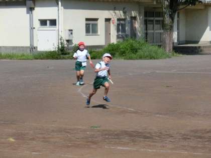 2年1組の子たちは、リレーをがんばっています。バトンをうまくわたすことが子供たちのこれからの課題のようです。