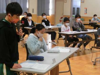 昼休みに多目的ホールで代表委員会が行われました。前期のあいさつマスターの取組について、各クラスの学級委員が、話し合ってきたことを発表しています。小柱2では、たくさんいるあいさつマスターの人たちを中心に後期どんな活動ができるのかを話し合いました。