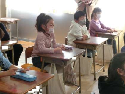 1年1組の道徳の授業です。金色のクレヨンの教材で誠実さについて考えました。