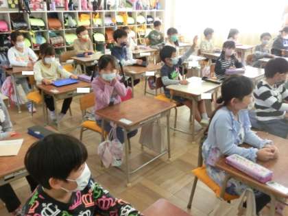 1年2組の国語の授業です。前の時間のグループでの話し合いを振り返って今日はどうグループで話し合ったらいいのか子供たちなりに考えていました。