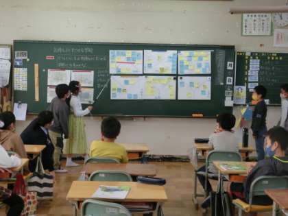 4年2組の読解の時間です。気持ちよく過ごせる学校にするにはというテーマで、グループで考え、提案しています。