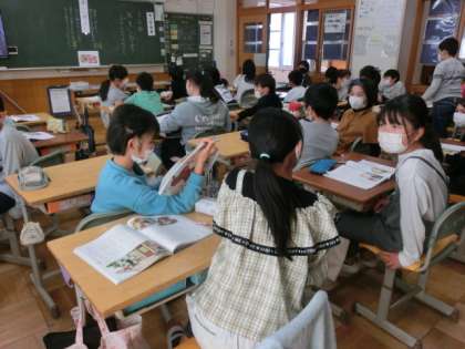 5年2組の道徳の授業です。手品師という教材で誠実さについて考えています。