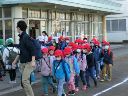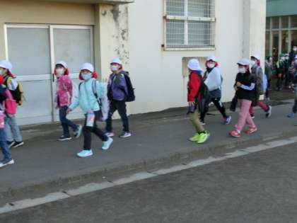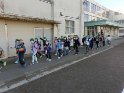 子供たちは、「いってきま〜す」で元気に手を振って学校を出発していきました。