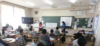 4年1組では、かけ算とわり算には、どんなきまりがあるのかを課題に考えています。