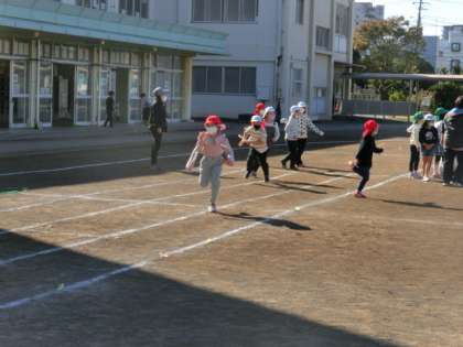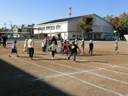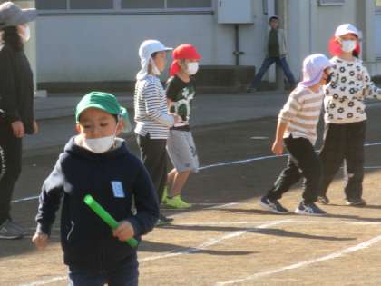 水曜日の体育学習発表会に向けて、昼休みに2年生がリレーの練習です。