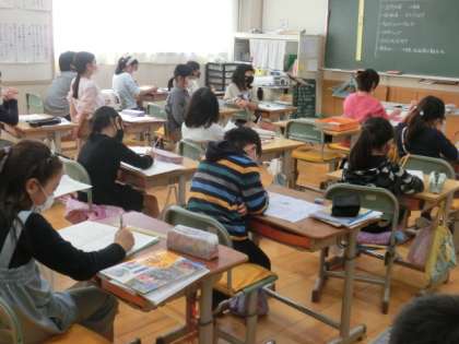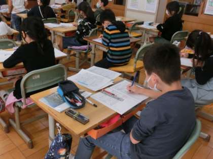 3年3組では社会科の学習でした。商店街やコンビニなどスーパーマーケット以外のお店の以外の学習をしていました。それぞれのお店の便利さに視点を当て、発表し合い、お店の特徴が引き出されていました。
