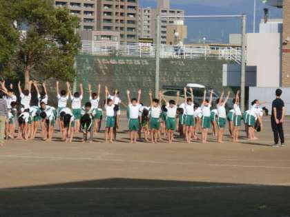 5時間目に6年生が明日の体育学習発表会に向けた最後の表現の練習を行っていました。