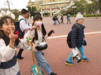 シャボテン公園の中をグループで回っています。カピバラやリスザルなど色々な動物をみたり、えさをやったり楽しそうです。