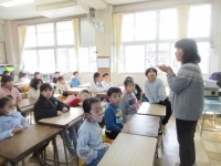 1年1組の子たちの算数です。たし算カードを「1+1、1+2・・・」と順番に並べています。なかなかカードが見つからずに大変そうな子もいましたが、「あっ階段みたいになってる」などと、気がついたことをつぶやいている子もいました。