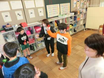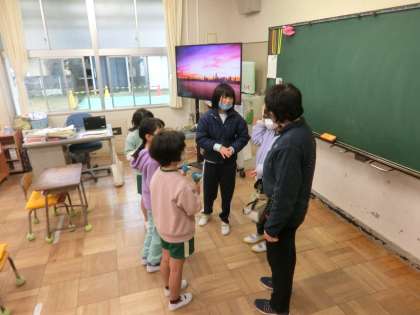 7の1組、2組の音楽です。ハンドベルを男の子、女の子に分かれて練習しています。