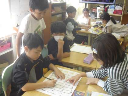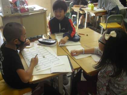 3年生国語「どうしたら上手に言葉をつなぐことができるか」の学習です。グループで、言葉の共通点や関係性を話し合いながら、言葉をつなげていくことができました。