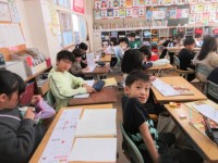 スクールミュージアムで、昨日の4年1組に続き、今日は4年2組の子供たちが共同制作に挑戦しました。作品は、後日モンミュゼの企画展で展示されるそうです。明日は4年3組が挑戦します。