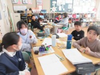 2組は、社会科です。地球儀を見て、気づいたことをグループで話し合っています。「山がでこぼこしてる!富士山は膨らんでない」「赤道がある」などいろいろな気づきがありました。みんな、とっても楽しそうでした。