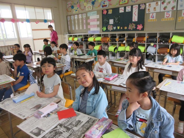 1年生は1,2組とも図工です。おひさま、太陽を紙皿で作ります。どんなおひさまができるかな?お顔は来週描く予定ですって。楽しみですね!