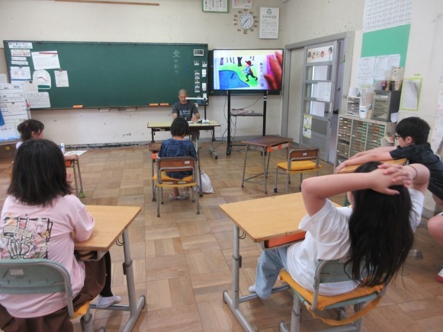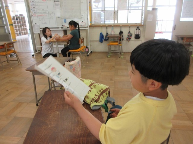 7の1組は、道徳「金のおの」の学習です。「聞いたことある!」というつぶやきが聞こえてきました。さあ、どんなお話なのでしょうか。子供たちは「いつも正直に」ということを学んでいきます。