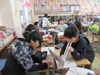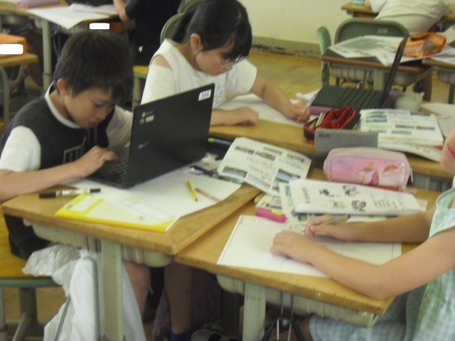 4年2組は、「生き物図鑑」をつくっていました。構成を考えながらていねいに進めていました。