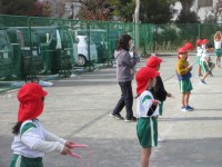 1年生は、1,2組とも体育で、外に出て縄跳びをしました。縄跳びカードに挑戦して、...