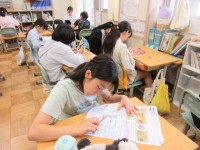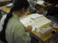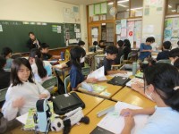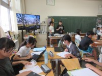 今日の6時間目に、沼津市の技術家庭科研究チームの小中学校の先生方が6の1の家庭...