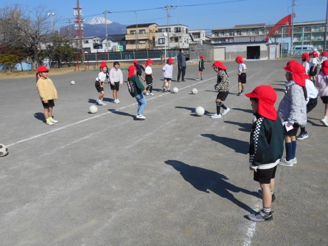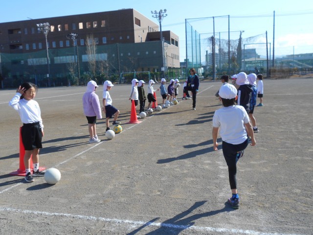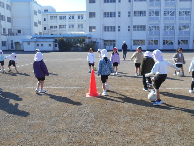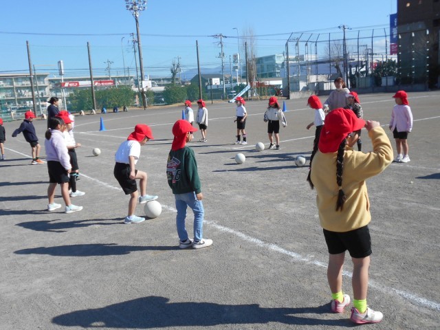 「ボールけり」の学習です。2人組になって、ボールを蹴る練習をしました。
