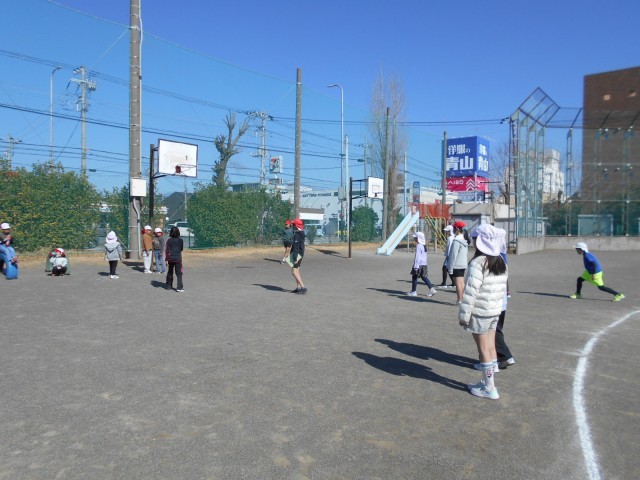 運動場では、せんおにごっこやころがしドッジ、だるまさんがころんだなどで遊んでいました。遊びが終わると、6年生に感謝の気持ちを伝える元気なあいさつが聞こえてきました。企画、準備、運営をしてくれた6年生、ありがとう!五小っ子のみんなが笑顔になれました。