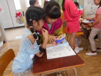 子供たちが 描いた「ふしぎな たまご」の作品を、廊下や 階段に 掲示してあります。保護者のみなさんには、個人面談の時などに ご覧ください。