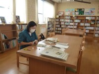 図書館が開く休み時間には、たくさんの子供たちが 本の返却・貸出に来ています。