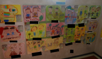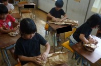 図工では、「くしゃくしゃ ぎゅっ」の学習を進めています。
