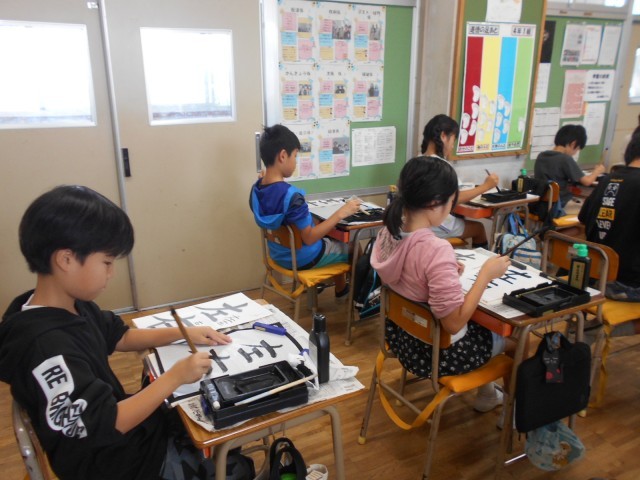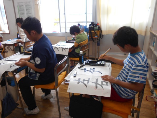 席書コンクールに向けて、「左右」の練習をしました。集中して書いていました。
