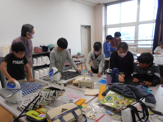 いよいよランチョンマットの完成です。今日も、ミシンボランティアの方が来校し、子供たちの支援をしてくださいました。