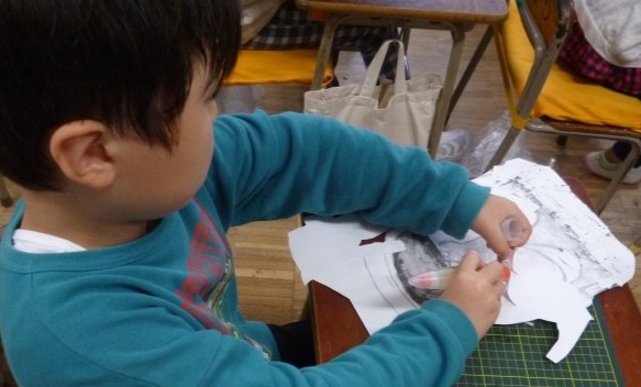 図工では、「紙版画にチャレンジ!」の学習を進めています。