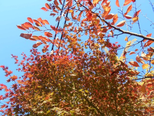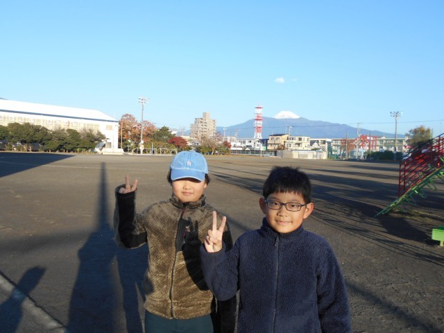 爽やかな秋晴れです。校内のあちらこちらでも紅葉が見られ、澄み切った青空に富士山が映えていました。