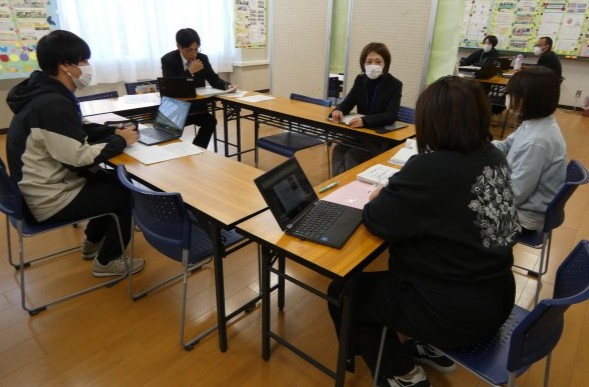 本校教職員だけでなく、第五校区の第五中学校や沼津視覚特別支援学校の先生方にも参加していただき、皆で、様々な意見を出し合いました。