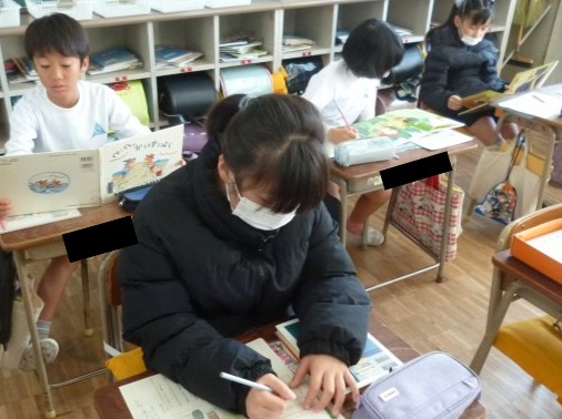 今回は、図書館で借りた、1・2年生や友達に「おすすめの本」をもとに、「ボディコピー」や「キャッチコピー」作りをし、下書きしていきました。