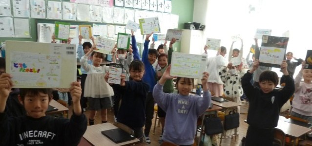 その一環で、本の「ポップ」作りをし、友達が作った「ポップ」を認め合ったり、紹介された本を読んだりしていきました。