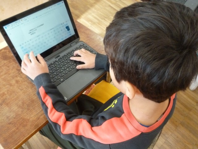 そして、現在開催されている「五小っ子美術館」の鑑賞もしました。お気に入りの作品を見付け、クロームブックを活用して、どのようなところがお気に入りかを、まとめることもできました。