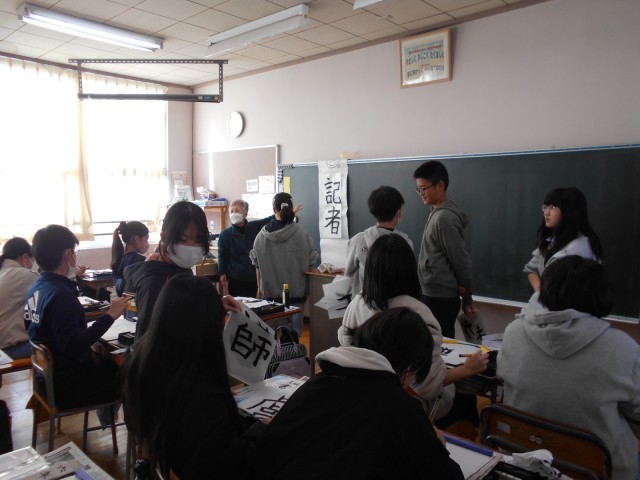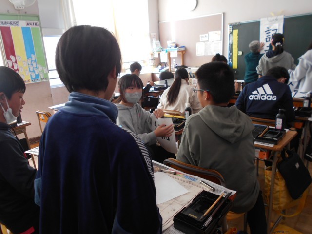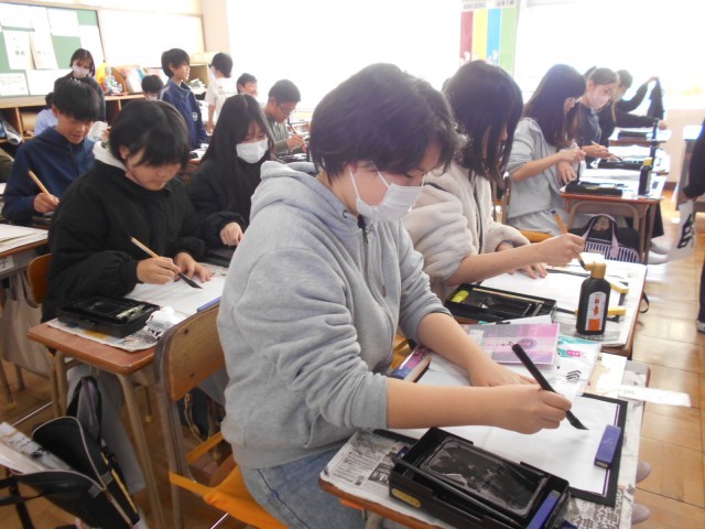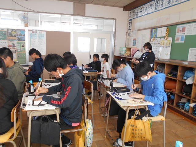3学期になって初めての毛筆の授業でした。卒業式の会場を飾る自分の夢の書の準備を始めました。