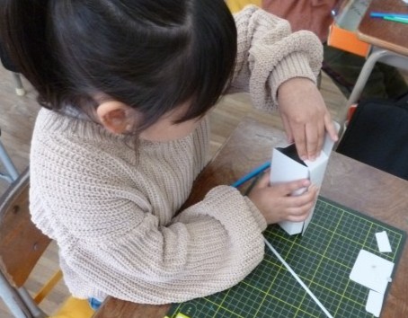 ストローを使って、「動く仕組み」を作っていきました。