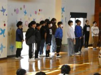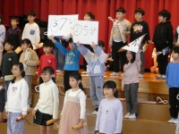 5年生の劇のストーリーに沿って、各学年から6年生へだしものがありました。3年生は、「パフ」のリコーダー演奏、1年生は「ありがとうの花」の替え歌を披露しました。素敵な出し物のパワーによって、「ひまわり」と「ガーベラ」の花が咲きました。